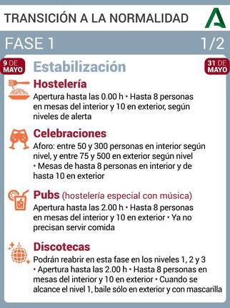 Andalucía permanecerá pues dos semanas más en la llamada Fase 1 de la desescalada tras la superación del estado de alarma, anunciada por el Gobierno andaluz el 6 de mayo.