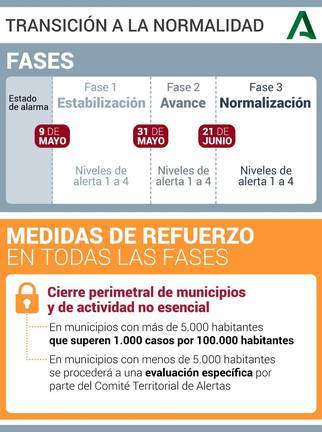 La Junta de Andalucía pospone una semana más, guiada por motivos de "prudencia", la evaluación de la fase 1 de la desescalada de restricciones derivadas de la pandemia de Covid-19 en la comunidad autónoma que tenía previsto llevar a cabo esta semana el Comité de Alerta de Alto Impacto en Salud Pública de Andalucía, más conocido como comité de expertos que asesora al Gobierno andaluz en la crisis sanitaria.