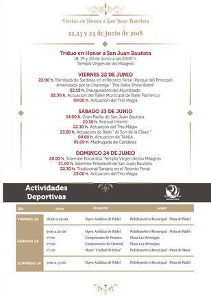 La barriada de los Príncipes del municipio de Palos de la Fronterá, vivirá durante este fin de semana un completo programa de actividades con las fiestas en honor de San Juan Bautista, festividad para la que han preparado acciones tanto de carácter lúdico como religioso para hacer vibrar a vecinos y visitantes que quieran acercarse durante estos días por la barriada.