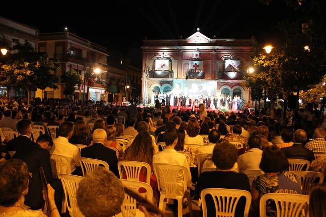 Han arrancado oficialmente las fiestas patronales con el tradicional acto de coronación y pregón celebrado en la Plaza de España. Con absoluta puntualidad, a las 22:30 arrancaba un espectáculo multimedia coordinado desde el Área de Cultura que giró entorno a los lugares que Cristóbal Colón necesitó para cambiar el rumbo de la historia. De ahí la presencia de los alcaldes de Palos de la Frontera, Moguer y Huelva, Cristóbal Romero, Gustavo Cuéllar y Gabriel Cruz, respectivamente, que junto al presidente de la Diputación, Ignacio Caraballo, dejaron patente el protagonismo de San Juan del Puerto en la gesta colombina. Con la presencia también de la parlamentaria andaluza María Márquez y conducido por Rodri Blanco y Ana Blanco, el acto tuvo una primera parte donde la cantante sanjuanera Alicia Lorenzo interpretó ‘América’ mientras se izaban las banderas por parte de sus representantes municipales.