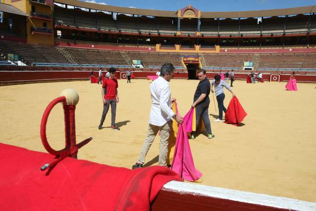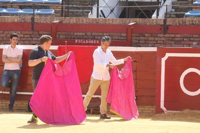 La Plaza de Toros La Merced acoge cada sábado la cuarta edición del Curso de Toreo de Salón para Aficionados Prácticos que organiza el Aula Joven de la Merced. Decenas de personas participan de esta iniciativa que empezó siendo para jóvenes de menores de 30 años, pero que, ante su aceptación y demanda, se abrió a todo tipo de público. Los alumnos se forman en varias sesiones teóricas sobre las nociones básicas de la suertes fundamentales del toreo, que luego ponen a prueba en un tentadero final que se celebra en alguna ganadería de Huelva, como ya han sido las de José Luis Pereda-La Dehesilla y Albarreal en ediciones anteriores.