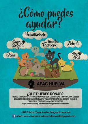 Las instalaciones que Apac quiere construir, "que más que un refugio serían una colonia controlada", especifica Ana García, no beneficiaría sólo a los gatos de Punta de la Barranca, sino a muchos de los que deambulan por el municipio porque "al haber tantas casas de campo, en Aljaraque hay muchas colonias; e incluso hay quienes aprovechan la nuestra para abandonar a sus gatos porque saben que están cuidados. Se piensan que tenemos la obligación de acoger a todos los animales", señala.