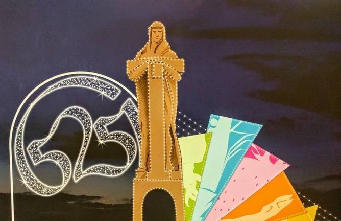 La portada que ya se activó ayer y que volverá a lucir esta noche tras la inauguración oficial ha contado con la colaboración de la Diputación Provincial y con unas dimensiones de 30 metros de ancho y 18 de alto resulta más grande que la de la pasada edición.El Monumento a la Fe descubridora, el llamado Colón, es la imagen central de esta portada mientras que a su lado, la imagen representativa de la ciudad de Huelva estará flanqueada por los dos logotipos de los acontecimientos que vive Huelva este año.