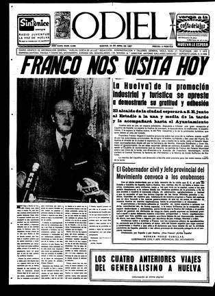 Una ocasión singular para echar la vista atrás y recordar las visitas que el Caudillo hizo a la capital onubense. En total fueron cinco las veces que Franco visitó Huelva, en 1943, 1948, 1956, 1961 y 1967. Acontecimientos recogidos por los medios de comunicación del momento, los NO-DO (acrónimo de los Noticiarios y Documentales Cinematográficos que fueron creados por el Gobierno en España el 29 de septiembre de 1942) y periódicos como el Odiel (Diario de Falange Española Tradicionalista y de las J.O.N.S).