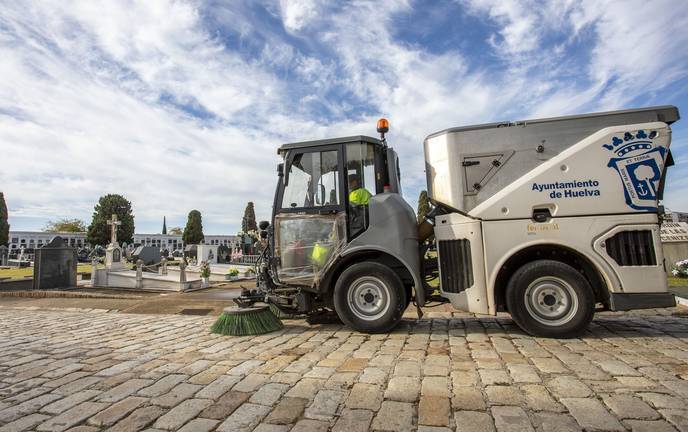 El Ayuntamiento de Huelva ha reforzado la limpieza en el cementerio de La Soledad, de cara a la festividad de Los Difuntos, con la puesta en marcha de un dispositivo que incluye tareas extraordinarias, tanto en el interior, como en el exterior del camposanto, además de en los accesos y aparcamientos, mientras que se ha incrementado la frecuencia de recogida de los contenedores.
