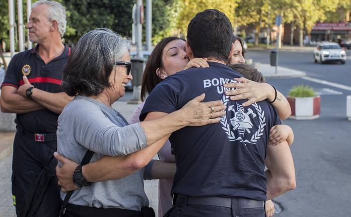Recibidos por sus familiares y por un grupo de periodistas, los bomberos de Huelva podrán ahora descansar antes de volver a su tarea normal en Huelva capital.