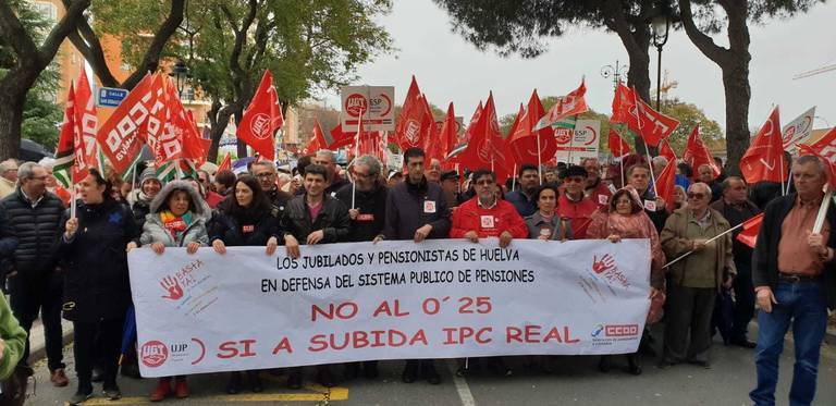 Para las centrales sindicales es fundamental salir a pedir pensiones dignas y se han movilizado en los últimos meses en este sentido. Les preocupa “en especial en Huelva, provincia en la que las pensiones son un 7% inferior a la media nacional, lo que supone que cada pensionista onubense cobra una media de 1.036 euros menos al año, situación que implica que la provincia deja de percibir casi 100 millones de euros en pensiones públicas”.