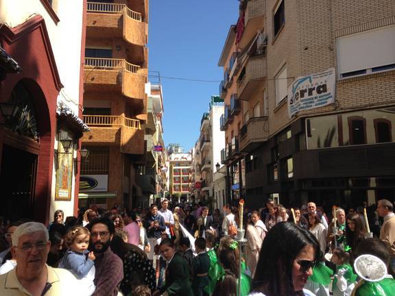 En esta tradición todos los pequeños participan de una forma muy activa recreando un cortejo tal y como se observa en cualquier hermanadas de nuestra ciudad. Esta actividad se desarrolla con mucha ilusión y mucho años de trabajo, tanto los alumnos como los padre hacen realidad esta iniciativa que lleva muchos años en Huelva y que se ha convertido en tradición.