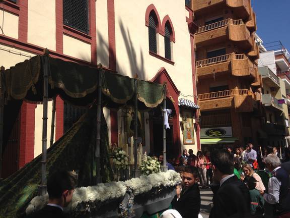 El momento más emotivo ha sido el paso por la Capilla de la Señora de la Esperanza donde eran recibidos por miembros de la hermandad. Allí se llevó a cabo una levantá del paso de la Burriquita, lo hacía el hermando mayor de la Hermandad de la esperanza Alfonso Aragón. También emotivo el paso de la Virgen de los niños junto al capataz de nuestra señora de la Esperanza, Pedro Olivares.