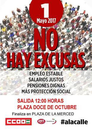 "No hay excusas", reza el lema de este año de la movilización de los dos sindicatos mayoritarios llamando a la movilización popular por un "empleo estable, salarios justos, pensiones dignas y más protección social".![]()