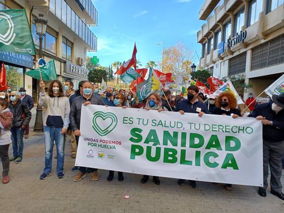 Bajo el lema “Es tu Derecho, por una sanidad de calidad en Andalucia”. La ciudadanía onubense ha secundado este sábado la manifestación convocada por los sindicatos CCOO y UGT en rechazo a la política sanitaria de la Junta de Andalucía. Los manifestantes han salido a las 11.30 horas desde Plaza Doce de Octubre hacia la Plaza de las Monjas de la capital