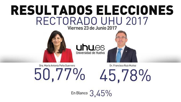 María Antonia Peña ha ganado las elecciones al rectorado de la UHU con un 50,77% de los votos frente a un 45,78% según han confirmado fuentes de la candidatura de Peña a Diario de Huelva, por lo que se convertirá en la primera mujer en ser rector de La Onubense.