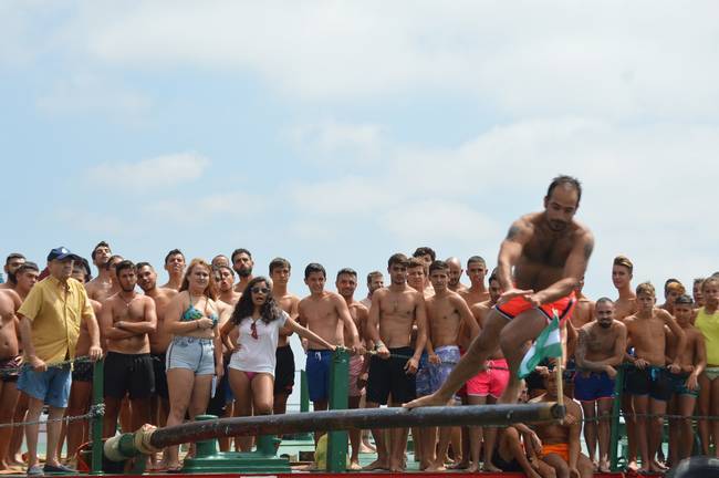Mario de la Rosa se hace con la primera bandera en la cucaña