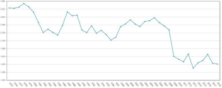 Desde 2008, año del estallido de la crisis económica, en el que se registraron en la provincia de Huelva 2.511 uniones, los matrimonios están por debajo de la cifra de los 2000, con las excepciones de 2012, en la que hubo 2.018, y 2016, con 2.007 enlaces, pero están muy por debajo del máximo histórico que supuso el año 1956, en el que hubo 3.414 uniones matrimoniales.
