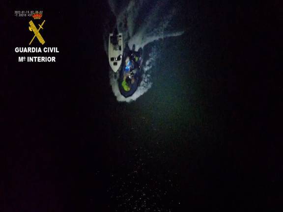 La Guardia Civil organiza un dispositivo y la localiza navegando lentamente hacía la costa. La embarcación sospechosa es de tipo panelable de unos 8 metros de eslora y con un potente motor, va cargada de fardos, presumiblemente de hachís, por lo que se decide intervenir.