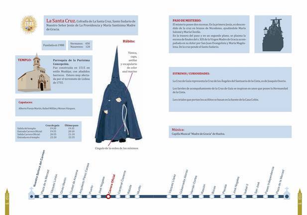 La Cofradía de la Santa Cruz, Santo Sudario de Nuestro Señor Jesús de la Providencia y María Santísima Madre de Gracia realizará su salida a las 19.20 horas desde la Parroquia de la Purísima Concepción, esta jóven hermandad (fundada en 1988) acompañará a su paso de Misterio con 120 nazarenos de azul marino en túnica y capa.