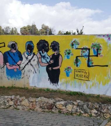 Desde el colectivo feminista Mujeres 24H denuncian que, el mural feminista realizado por la artista Cynthia Veneno en el Parque Moret por el Día de Internacional de las Mujeres, ha vuelto a ser vandalizado.