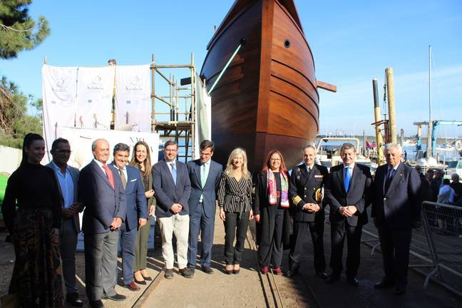 Durante el acto, Patricia del Pozo ha oficiado como madrina de la botadura de la ‘Nao Victoria 500’, a la que asistieron también los viceconsejeros de Presidencia, Administración Pública e Interior y de Cultura y Patrimonio Histórico de la Junta de Andalucía, Antonio Sanz y Alejandro Romero, respectivamente, además del presidente de la Fundación Nao Victoria, José Fernández de Cabo, y la alcaldesa de Punta Umbría, Aurora Aguedo.