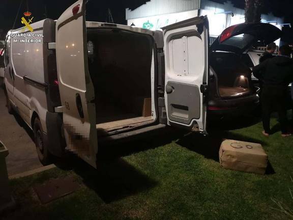 La Guardia Civil con la colaboración de Vigilancia Aduanera ha frustrado dos alijos en Isla Cristina y Punta del Moral (Ayamonte) deteniendo a seis personas. En total, se han incautado 84 fardos con un peso aproximado de 2772 kilogramos y se han incautado 6 vehículos y una embarcación. La Policía Local de Ayamonte colaboró en las detenciones del alijo de Punta del Moral