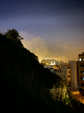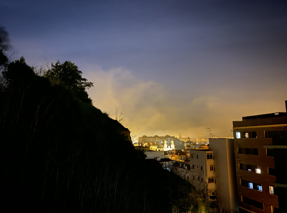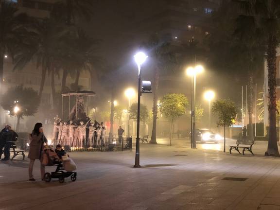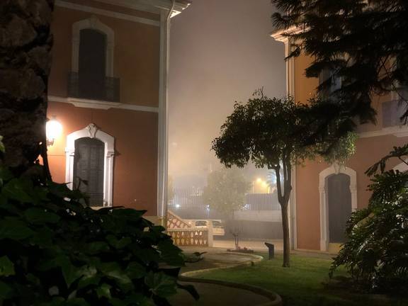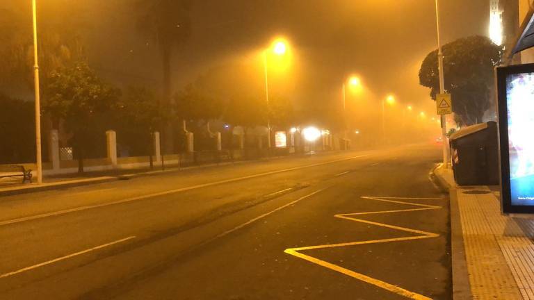 Tras un día casi primaveral con temperaturas de hasta 18 grados, al atardecer la capital se ha visto inundada por una neblina que ha dejado sus calles en estado casi desértico. Estampas londineses para una Huelva que ha vivido uno de los días más calurosos del invierno, y que en determinadas zonas (debido a las luces nocturnas de la capital) ha podido parecer humo anaranjado de un incendio.