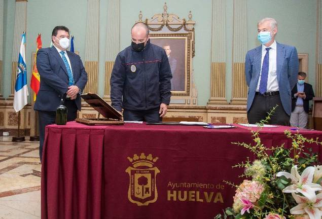El Ayuntamiento de Huelva ha incrementado la plantilla del Servicio de Extinción de Incendios con la incorporación de nueve bomberos-conductor. Unos efectivos municipales que han tomado posesión de su cargo en un acto celebrado en el Salón de Plenos del Ayuntamiento, que ha estado presidido por el alcalde, Gabriel Cruz, y en el que también han estado presentes la primera teniente alcalde de Economía, Presidencia y Relaciones Institucionales, María Villadeamigo; el cuarto teniente alcalde de Régimen Interior, Recursos Humanos y Modernización Digital, José Fernández; el concejal de Movilidad y Seguridad Ciudadana, Luis Albillo; y el segundo jefe de Bomberos, José Antonio Cruzán.