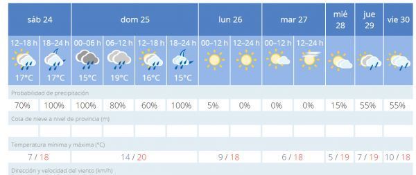 Vuelve la inestabilidad a la provincia con lluvias y rachas de viento. También habrá fuertes fenómenos costeros aunque desde Aemet no se considera necesario activar avisos en la provincia