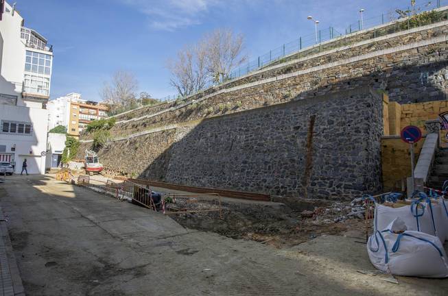 En su última fase de ejecución, estando muy próxima la finalización de la peatonalización de las calles Arcipreste González García y Cardenal Cisneros, que conforman los dos laterales del edificio consistorial, el Ayuntamiento de Huelva ha comenzado las obras para habilitar una nueva plazoleta junto al muro de contención del Cabezo de La Esperanza.