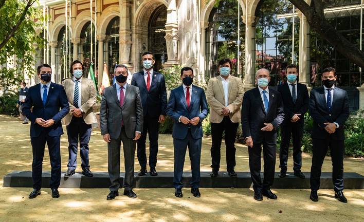 El alcalde de Huelva, Gabriel Cruz, ha estado presente en el encuentro celebrado en el Palacio de San Telmo con el presidente de la Junta de Andalucía, Juan Manuel Moreno Bonilla, y el resto de regidores de las capitales de la comunidad autónoma, dando continuidad al foro de diálogo, reflexión y puesta en común de medidas que tuvo una primera convocatoria telemática durante el Estado de Alarma y que proseguirá con reuniones periódicas para conciliar la protección de la salud pública frente al Covid-19 con la necesidad de impulsar la reactivación económica.