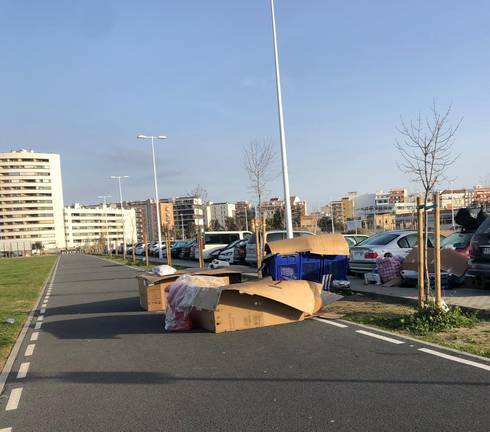 Los okupas desalojados del centro de Huelva han optado por acampar en el barrio de pescadería, donde han descargados sus enseres en plena calle después de que tuvieran que abandonar el edificio de la calle Macías Belmonte.