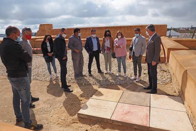 El alcalde de Palos de la Frontera, Carmelo Romero, ha visitado las obras de conservación y restauración que se están llevando a cabo en el castillo de la localidad. A esta visita también han asistido ediles del equipo de gobierno y concejales del grupo municipal socialista.