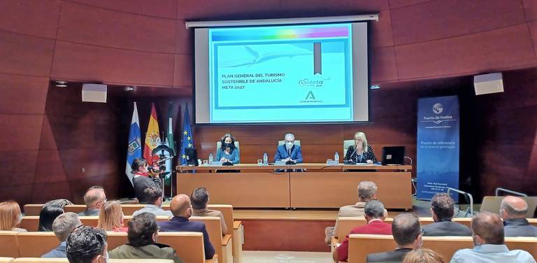 El secretario general para el Turismo de la Junta de Andalucía, Manuel Muñoz, ha presentado hoy al sector turístico de Huelva y a los agentes sociales, junto a la delegada territorial de Turismo de la Junta, María Ángeles Muriel, el Plan General de Turismo Sostenible, META 2027, que es “el marco estratégico del turismo” para Huelva y toda la comunidad andaluza apostando por la sostenibilidad, dentro de un ámbito temporal de 2021/2027 que coincide con el marco financiero europeo. A la presentación también ha acudido la presidenta del Puerto de Huelva, Pilar Miranda.