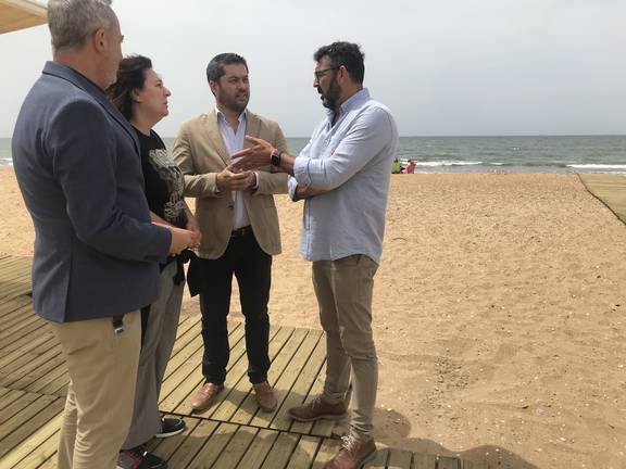 El teniente alcalde de Urbanismo, Medio Ambiente y Transición Ecológica del Ayuntamiento de Huelva, Manuel Gómez Márquez; el portavoz del equipo de Gobierno municipal y concejal de Turismo, Promoción Exterior y Universidad, Francisco Baluffo; la concejala de Hábitat Urbano e Infraestructuras, Esther Cumbrera; y el concejal de Movilidad y Seguridad Ciudadana, Luis Albillo, han visitado hoy la playa de El Espigón de Huelva, al objeto de comprobar la puesta a punto de todos los servicios de este espacio para una temporada que arranca hoy y se prolongará hasta el próximo 15 de septiembre.