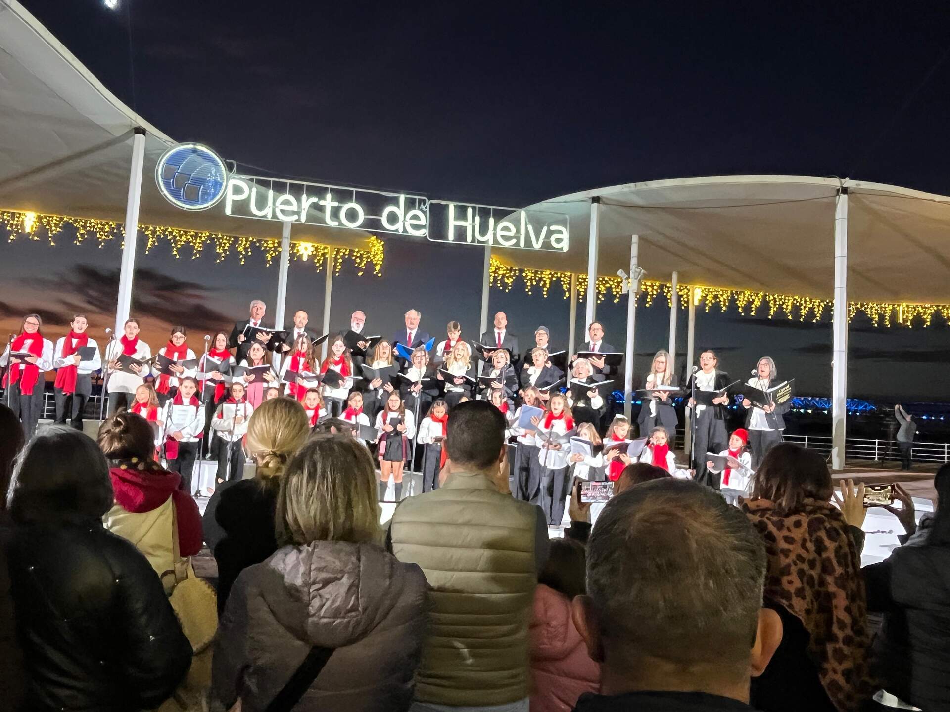 El Puerto de Huelva ha inaugurado su iluminación navideña, desplegando más de 450.000 luces tipo LED a lo largo de cinco kilómetros de la ciudad, desde la rotonda de acceso desde el Puente Sifón Santa Eulalia hasta el entorno del Monumento a Colón. El acto de encendido tuvo lugar en el Paseo de la Ría, donde niños y jóvenes de los coros de la Hermandad del Rocío de Huelva y del Liceo Municipal de la Música de Moguer interpretaron villancicos y piezas navideñas.