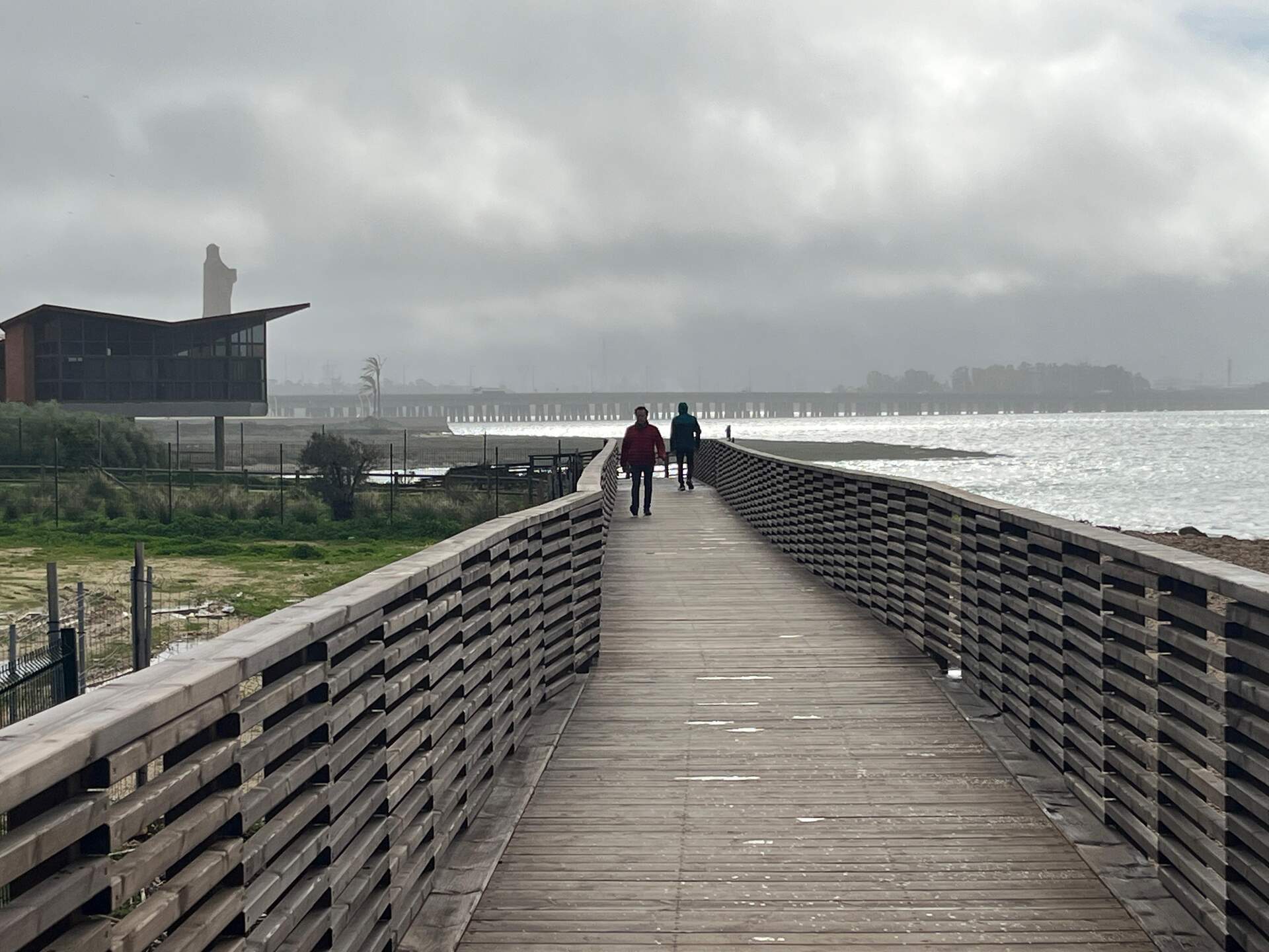 La nueva estructura está compuesta por vigas principales, riostras, viguetas, barandillas antiescala, pasamanos y tablones de piso de madera laminada de pino silvestre, tratada en autoclave y con tratamiento superficial posterior. Además, los herrajes empleados para el ensamblaje y arriostramiento son de acero inoxidable, con el objetivo de garantizar la durabilidad y resistencia del conjunto en un entorno expuesto a la humedad y la salinidad.