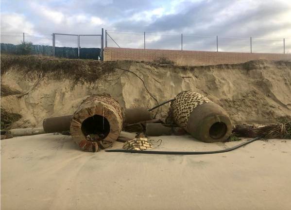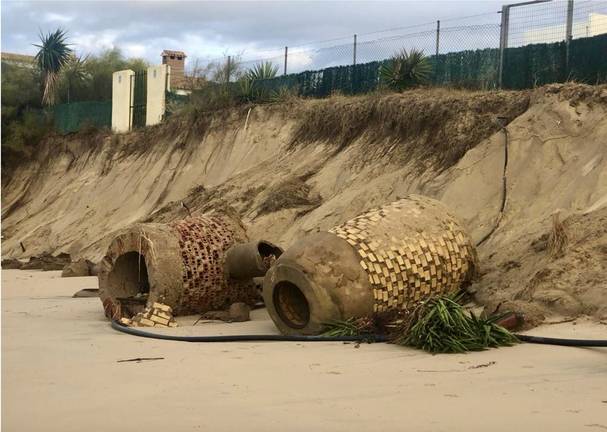 Hay que tener en cuenta que la lluvia, el viento y la alta marea que acompañó a este temporal provocó graves alteraciones en la topografía de la playa de El Portil, llegando a producir una retirada masivas de arena y un desnivel de varios metros de altura.Como consecuencia de esta pérdida de sustento se han producido graves destrozos en los colectores y pozos de registro de aguas pluviales y residuales de la red de saneamiento municipal.