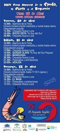 La Feria Nacional de la Gamba, la Chirla y el Boquerón del municipio costero no tendrá este año chirla, la parada biológica que mantiene a los mariscadores locales en un difícil situación, impedirá el consumo este año, aún así, desde el Ayuntamiento y la cofradía de pescadores se ha decidido no cambiarle el nombre para mantener vivo este producto y esperando que en la edición de las bodas de plata se pueda volver a consumir.