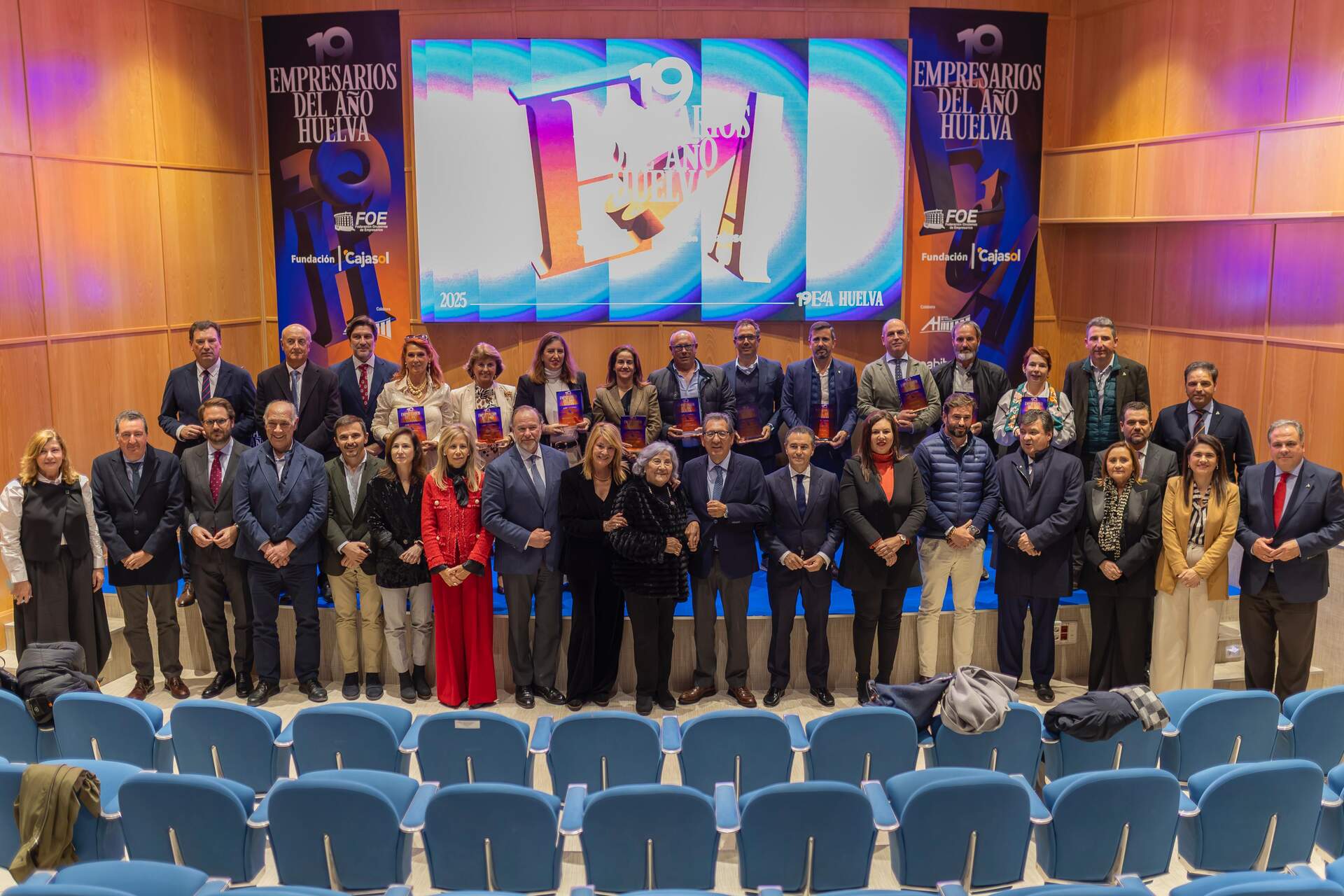 La Federación Onubense de Empresarios (FOE) y la Fundación Cajasol han celebrado este lunes la XIX edición de los Premios Empresarios del Año de Huelva, una cita ya consolidada que pone en valor el papel decisivo del empresariado en el crecimiento y la proyección de la provincia. El acto, celebrado en Huelva, contó un año más con la colaboración de Gabitel Ingenieros y Aguas de Huelva y reunió a autoridades, representantes institucionales y miembros del tejido empresarial onubense.