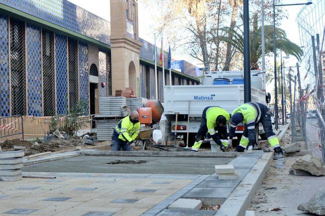 Actualmente los trabajos se encuentran al 70% de ejecución, avanzando en las tareas de albañilería para dar paso al acondicionamiento de los jardines, mientras se estudia la posibilidad de ampliar a una segunda fase para renovar también todo el acerado perimetral de las delegaciones autonómicas.