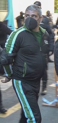 Bajó del furgón que lo trasladaba en medio de un vistoso despliegue policial. No hubo incidente alguno. Solo una letanía de improperios verbales del calibre de "hijo de p....; asesino... cab...; criminal y basura" atronaron en la esquina, lanzados por algunos de los curiosos que esperaban su llegada.