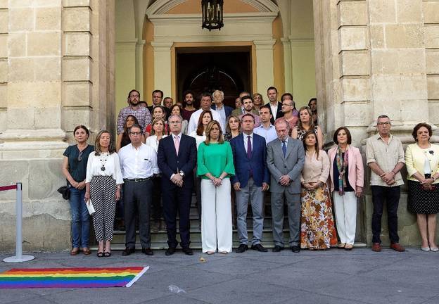 En Sevilla, el presidente de la FAMP, Fernando Rodríguez Villalobos, también ha guardado un respetuoso minuto de silencio a las puertas del Ayuntamiento hispalense, donde ha estado acompañado por la presidenta de la Junta de Andalucía, Susana Díaz y el alcalde de la ciudad, Juan Espadas.
