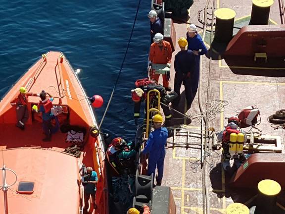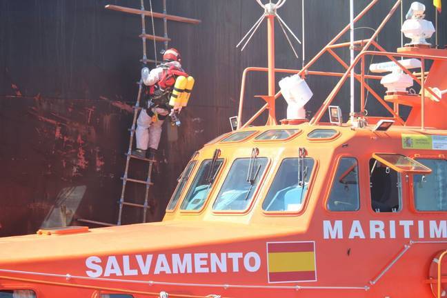 El teniente coronel Carlos Armada, jefe del grupo de intervención en emergencias tecnológicas y mediambientales de la UME ha asegurado que "hemos tenido la posibilidad de trabajar con Marina Mercante para hacer un ejercicio en el que nestro intervinientes han podido abordar un buque y rescatar a una víctima, el ejercicio ha sido un éxito", ha asegurado.