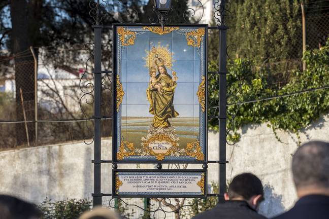El Santuario de la Cinta luce nuevo azulejo dedicado a la Virgen