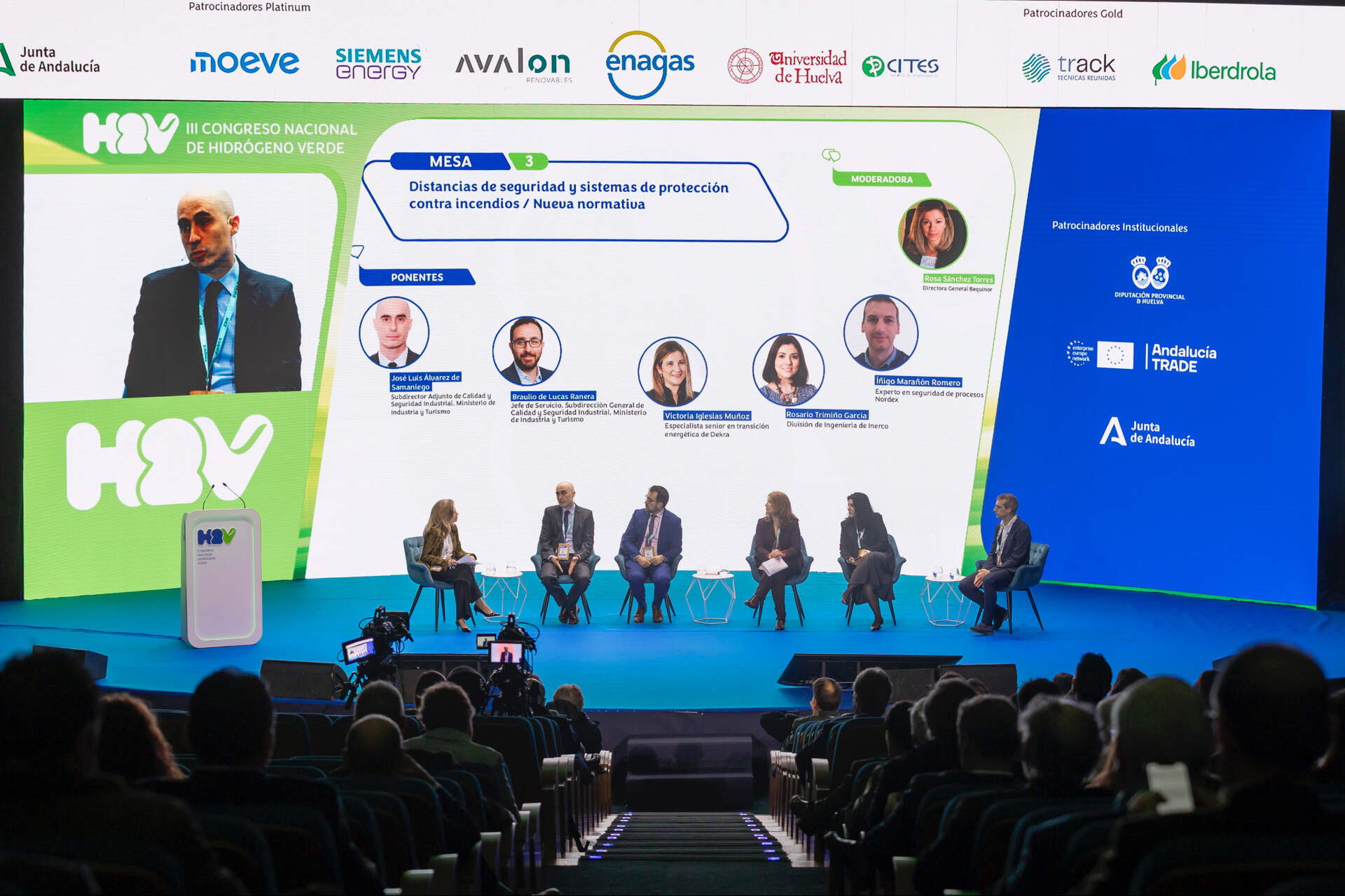 En una de las mesas técnicas más relevantes de la jornada, dedicada a distancias de seguridad y sistemas de protección contra incendios, se lanzó un mensaje claro y compartido por el sector: no habrá despliegue del hidrógeno verde sin un marco de seguridad claro, técnico y aplicable. Bajo la moderación de Rosa Sánchez Torres, se defendió la necesidad de abandonar criterios rígidos basados únicamente en metros estándar y avanzar hacia distancias de seguridad basadas en análisis de riesgo, con escenarios realistas y niveles de riesgo aceptables que permitan diseños seguros y viables.