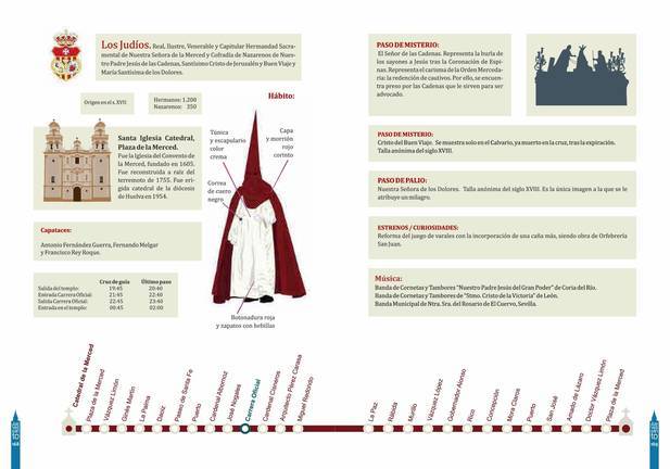 Por último, de la catedral de La Merced partirá a las 19.45 horas la Hermandad la Real e Ilustre Hermandad Sacramental y Capitular de Nuestro Padre Jesús de las Cadenas, Santísimo Cristo de Jerusalén y Buen Viaje y María Santísima de los Dolores ( los Judíos) con orígenes que se remontan al siglo XVII.