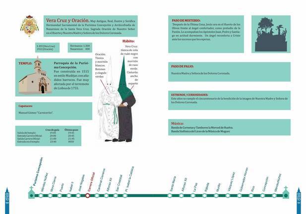 A las 19.05 horas, de la Parroquia de la Purísima Concepción saldrá la Muy Antigua, Real, Ilustre y Seráfica Hermandad Sacramental de la Purísima Concepción y Archicofradía de Nazarenos de la Santa Vera+Cruz, Sagrada Oración de Nuestro Señor en el Huerto y Nuestra Madre y Señora de los Dolores Coronada. Los acompañantes de la Oración vestirán túnica y morrión blancos, mientras que un tramo de nazarenos vestirá el antiguo hábito de la Vera+Cruz, con túnica negra y morrión verde.