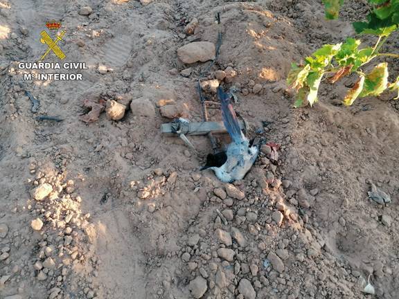 Por todo ello realizaron un discreto apostadero sobre las inmediaciones de la parcela en cuestión, cuando observaron a una persona con un ave en las manos, manipulando varias de las trampas de madera que estaban allí colocadas. Una vez identificada esta persona, el varón comentó a los agentes que estas trampas habían sido colocadas por él, siendo localizadas tres trampas más, las cuales tenían tres aves capturadas, así como un cepo de hierro.