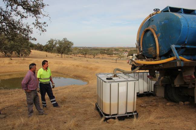 Esta situación también ha obligado a la Mesa de la Ganadería Extensiva a llevar agua a ganaderos del Ándevalo. Más de 12.000 litros ha repartido en fincas de Cabezas Rubias, El Cerro de Andévalo y Puebla de Guzmán.