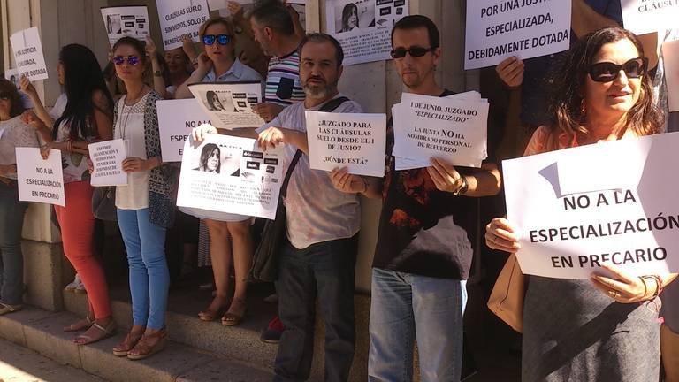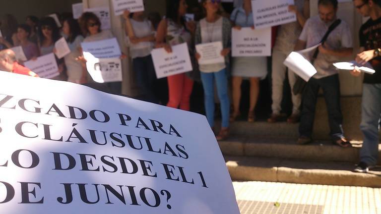 A la vista de lo que se avecinaba, y tras comprobar que no se había adaptado el Juzgado de Primera Instancia 6 -ejemplar hasta entonces por su capacidad resolutiva- al efecto, hubo una concentración a las puertas de la Audiencia Provincial encabezada por jueces y magistrados y acompañados de abogados, secretarios, procuradores y funcionarios para protestar por la situación y exigir más medios acordes a la exclusividad en materia de cláusulas suelo.