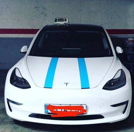 Daniel Sánchez ha adquirido para su trabajo de taxista en Huelva un coche eléctrico nada común: un Tesla Model 3