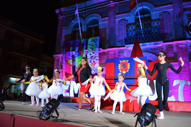 A las diez en punto de la noche, y tras un breve chaparrón que descargó sin mayor importancia sobre en la localidad, los presentadores dieron paso a la primera actuación. Bajo el título ‘Circo’ el grupo de ocho alumnas del Taller de Ballet Clásico que dirige la profesora Rocío Candón hicieron diversos números muy vistosos relacionados con la cultura circense. Las bailarinas interpretaron conocidas composiciones, algunas apoyadas en barra y otras acompañadas con pelotas y cintas.